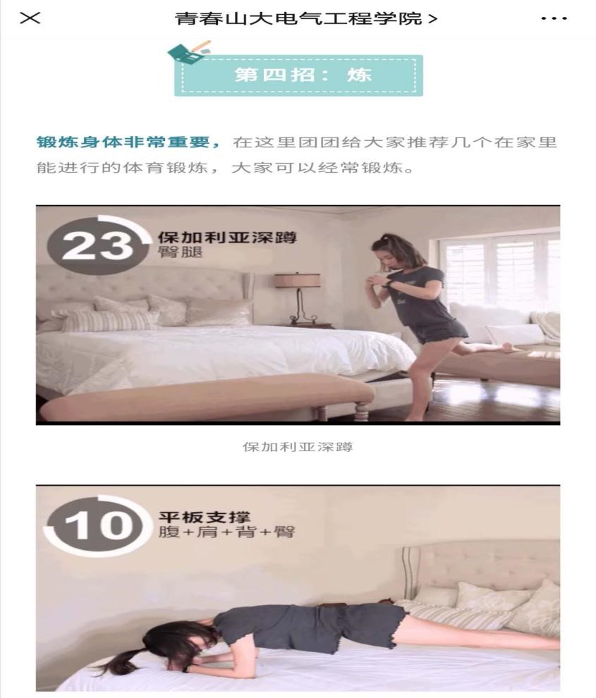 锻炼打卡读书忙,文体活动充时光。居家期间,为引导同学们丰富身心,增强体质,yl23411永利集团官网登录学生会推出了一系列文体活动。提倡以文育人,开展读书系列活动,阅读征文大赛,读书笔记大赛和读书打卡大赛;提倡文体并进,充分利用线上资源,以图片,视频等对同学们进行体育锻炼指导,并举办健身打卡大赛,以激发同学们的参与热情;对接英语四六级考试,开展了主题为“关注疫情,助力武汉”的英语作文大赛,同学们不仅提升了英语书写能力,同时传达了对武汉人民的关心及支持。文体活动使同学们之间形成了良好的氛围,自发进行自我提升,充实了返校前的时光。