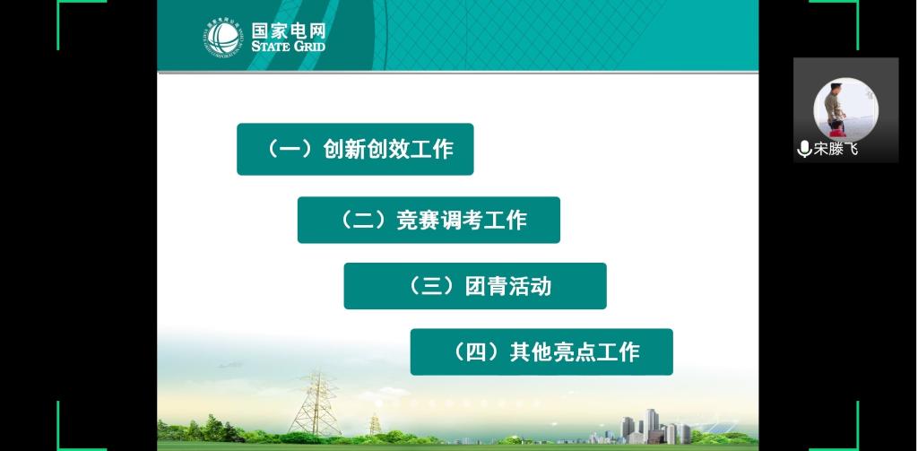 随后,宋滕飞从创新创效工作、竞赛调考工作、团青活动和其他亮点工作四个方面对供电企业青年学习成长体系进行了介绍,并结合自身经历以及自己在电网8年的工作经验,畅谈未来供电企业青年的发展。同时,他强调专业技能以及多方面知识对供电企业人才的重要性,勉励同学们在做好本职工作的同时也要在其他方面有所建树。最后,宋滕飞和同学们展开交流,对有关个人就业和电网工作的问题进行了详细的解答。