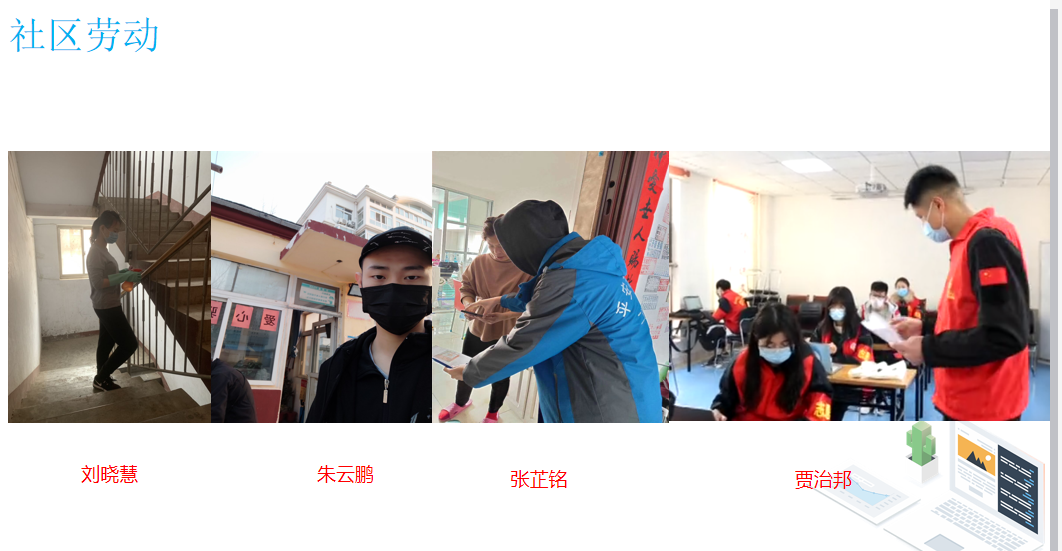 同学们利用可以利用到的志愿机会,参与到了社区的志愿服务中,为国家和社区服务尽到了自己的一份力,实现自己作为一个大学生的力所能及的劳动价值体现。