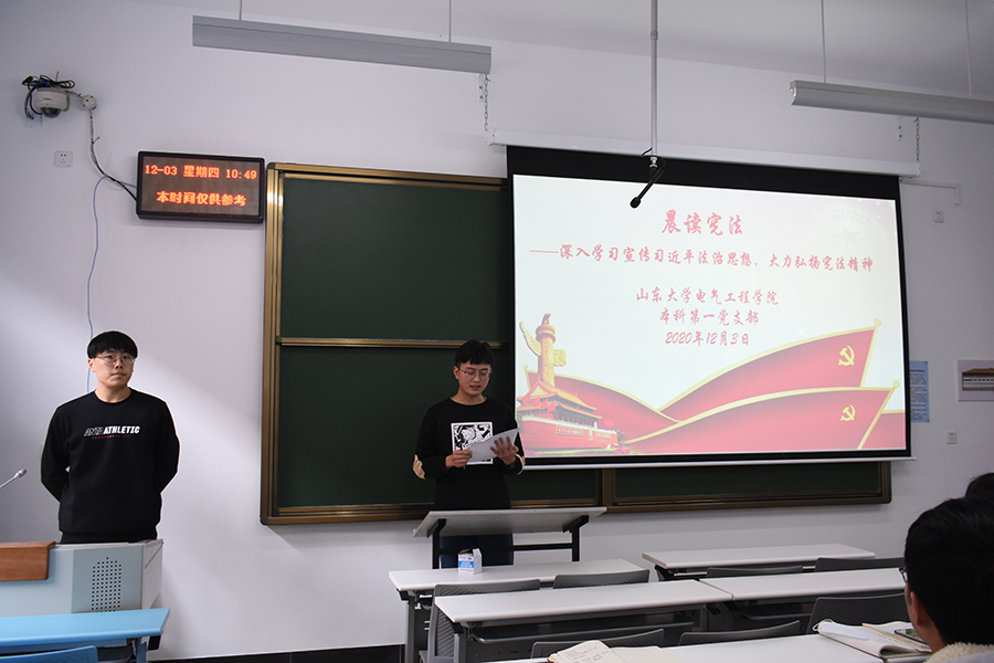 12月3日上午,在国家宪法日即将到来之际,yl23411永利集团官网登录本科生第一党支部开展宪法晨读活动。此次活动由党支部书记高宇主持,党支部成员悉数参加。