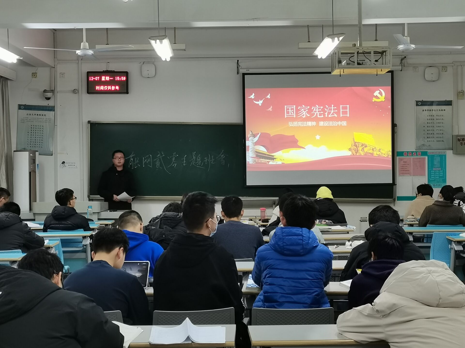 领航定向,引领党员先锋率先垂范。学院各党支部率先开展集中宪法学习活动,通过召开党支部会落实宪法晨读、宪法条文讲解、文件学习感悟分享、对宪法宣誓等主题党日举措。党员带动团员群众,在各自班级的专题班会、主题团课上,结合党的法治理论,进一步宣传讲解宪法精神,充分发挥党员的示范带头作用。