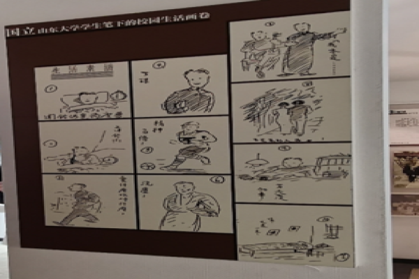 校史馆展览内容丰富,其中既有当时正式的文字记录,也有摄影图片和大师画像,还不乏一些闲谈杂录,特别是一幅幅充满趣味的生活素描让同学们切身感受到当时真实的校园生活。解说人员对山大悠久的历史如数家珍,娓娓道来。同学们也对山大历史兴趣浓厚,时而停下脚步认真阅读,观看墙上的文字、壁画,时而三五成群讨论交流,时而与讲解人员进行互动,感受一段段历史佳话。
