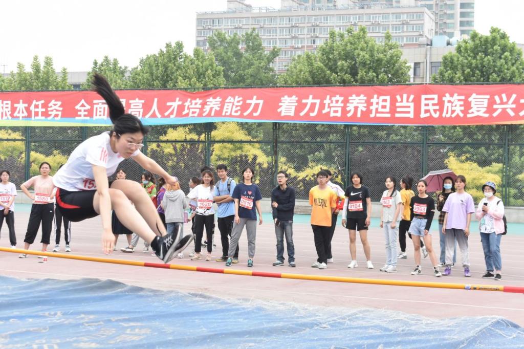教职工比赛中,老师们尽展风采。男子跳远决赛中,刘浩老师、张云鹏老师分别取得第六名和第十四名的成绩。柴亚南老师在女子铅球比赛中取得第七名。场下,学院师生全场调度通力合作,服务参赛师生,记录精彩瞬间,展现我院的精神风貌。