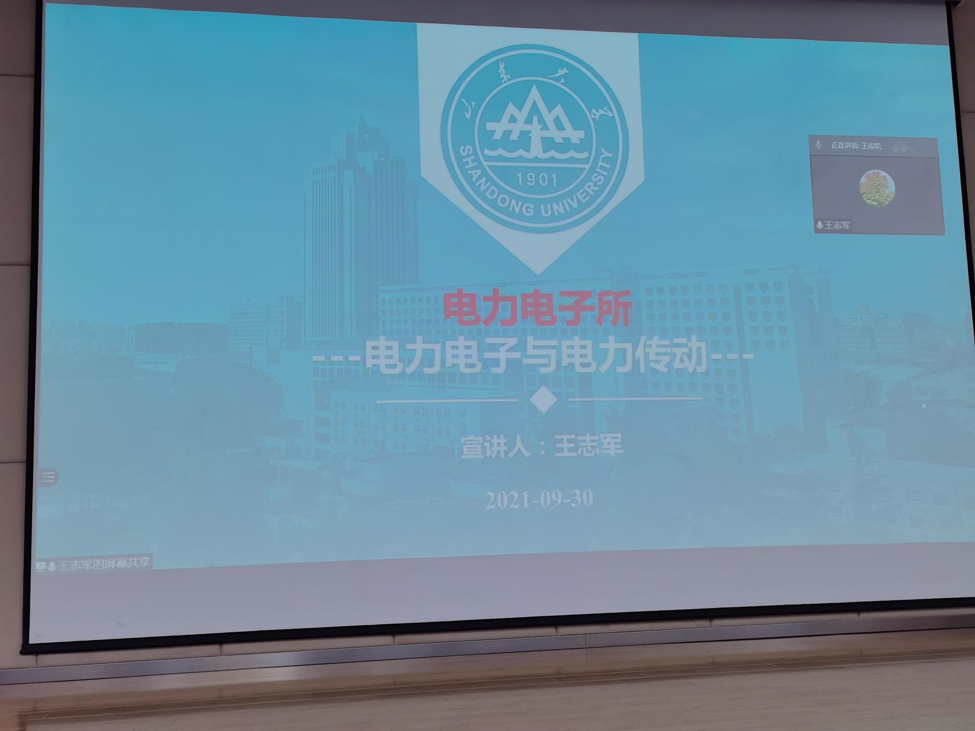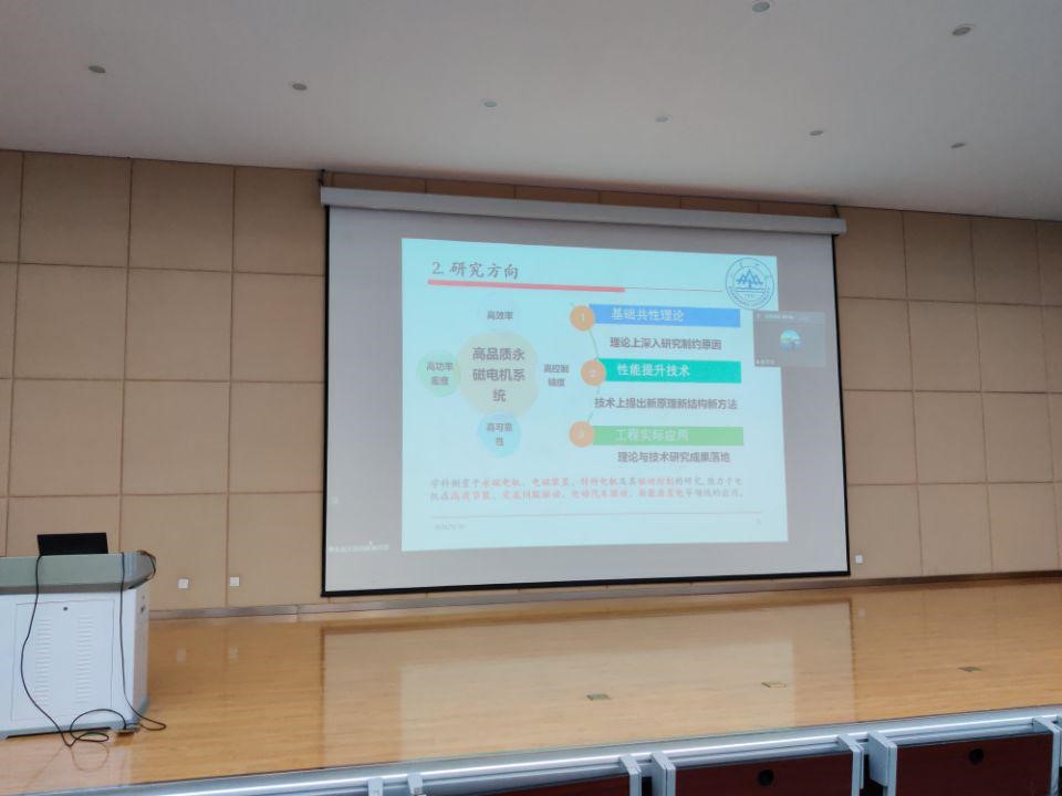 会上,电机与电器研究所教师赵文良向同学们展示了电机行业的研究方向,多学科交叉的学术背景,目前我国电机产业的现状,展示了学生广阔的就业方向。可再生能源与智能电网研究所教师王晓辉向同学们介绍了研究所的人员构成、研究方向、学术成果与实验条件等内容,着重讲解了研究所在智能电网等方向上的相关研究成果。电力电子所教师王志军向同学们推荐了研究所的电力电子与电能质量研究中心和实验室,介绍了其良好的科研支撑条件,简要讲述了研究所在电力电子系统方向上的成果。