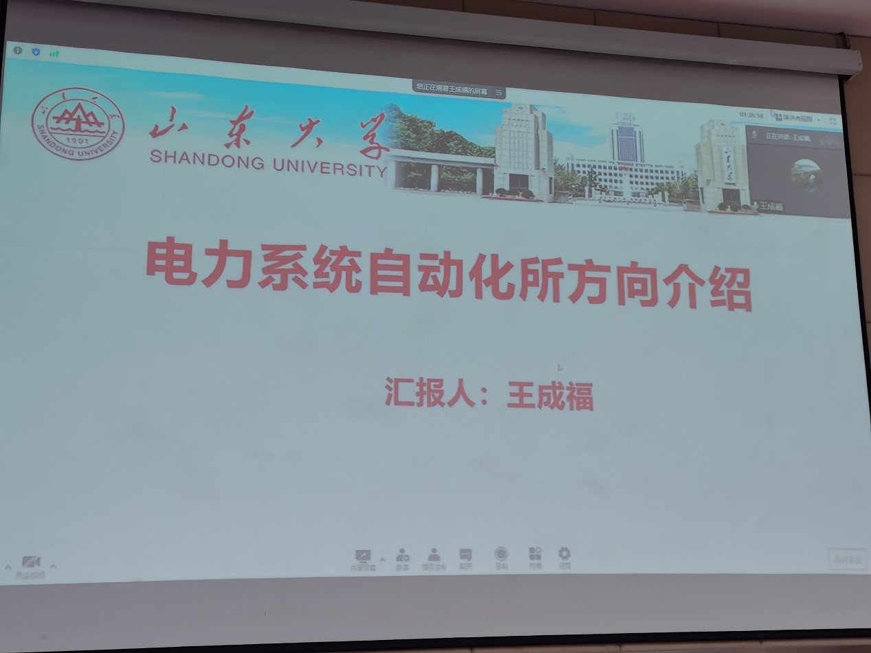继电保护所教师高厚磊说明了研究所故障分析与保护的研究方向,同时阐述了及其理论与实验并重的研究方法。高压与绝缘技术研究所教师孙滢通过介绍研究所的师资力量展示了研究所年轻且具有一定影响力的特点,表达了期待与同学们共同研究的意愿。电力系统自动化所教师王成福讲解了系统运行、控制及运营等方面的研究内容及目前成果,说明了该方向优化运行现代电力系统的重要作用。会议最后,新能源汽车电力系统团队教师于大洋讲解了其研究团队的专利成果及成果转化过程,介绍了其将新能源汽车变为储能装置的新定义。