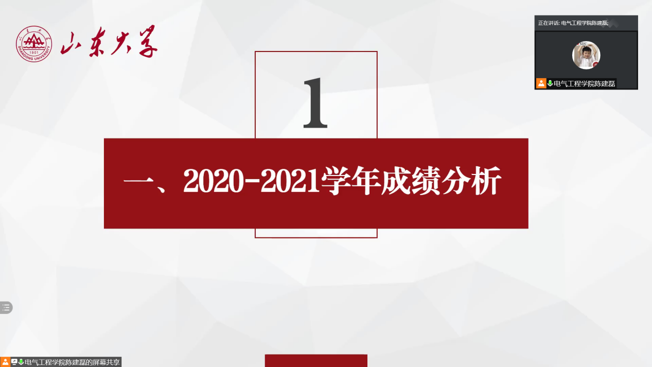 会上,陈建磊表示“虽然正式接手20级时间不长,还没能与所有同学都交流过,但是我会尽自己最大的努力让家长们了解到学生的在校表现,达到‘家校联动,协同育人’的目的。”接着以2020-2021学年成绩分析为切入点,从学风建设、文体活动、科技创新、社会服务等多元化的方面对学院2020级各班的整体情况进行了介绍,让家长们对学生的成绩排名、个人荣誉、学生工作和校园生活有一个全面而深入的了解,同时对表现突出的班级和个人提出表扬,也对家长的悉心教育和对学院的支持表达了真挚感谢。