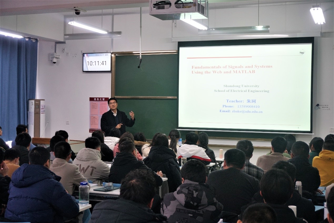 高扬梦想之帆,以梦为马,汲取奋进力量。2月21日,yl23411永利集团官网登录开学第一周“公开教学”活动顺利开展,学院副院长、电力系统研究所教授叶华面向19级全球能源互联网班讲授《电气工程基础》、电力电子研究所副教授朱珂面向20级本科生讲授双语专业必修课《信号与系统》,多名教师到场与同学们一同聆听这节别开生面的开学第一课。仰望星空,脚踏实地,严谨求是的学风将伴随电气学子奔赴更加精彩的远方。