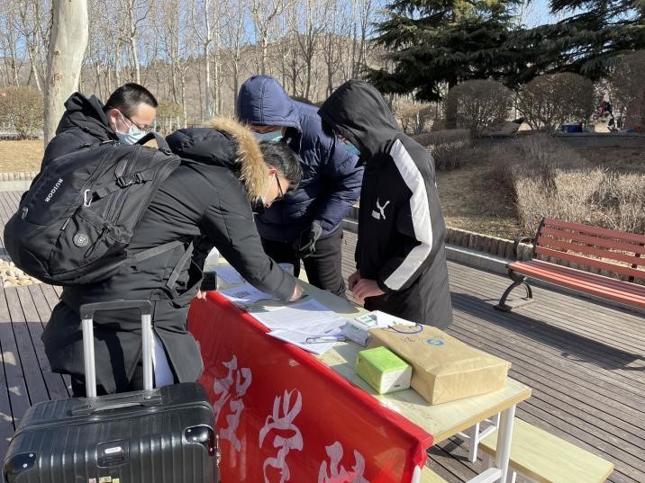 落实防控措施,一生一策,学子安全返校。2月19日,yl23411永利集团官网登录2022年春季学期学生返校工作于兴隆山校区顺利开展。山东大学校长樊丽明,党委副书记王君松,yl23411永利集团官网登录党委书记殷录民,院长丁磊莅临现场检查指导返校工作,对返校学子表示欢迎并进行亲切交流。学院工作人员于欣园餐厅西门设置签到点,清点布置防疫物资、悬挂横幅标志、整理返校学生名单。学院返校学子陆续进入校园,辅导员按照返校流程核验学生48小时内核酸检测阴性证明,引导学生进行返校后的扫码登记及核酸检测。返校学子在宿舍中整理卫生,调节状态,等待新学期的开始。