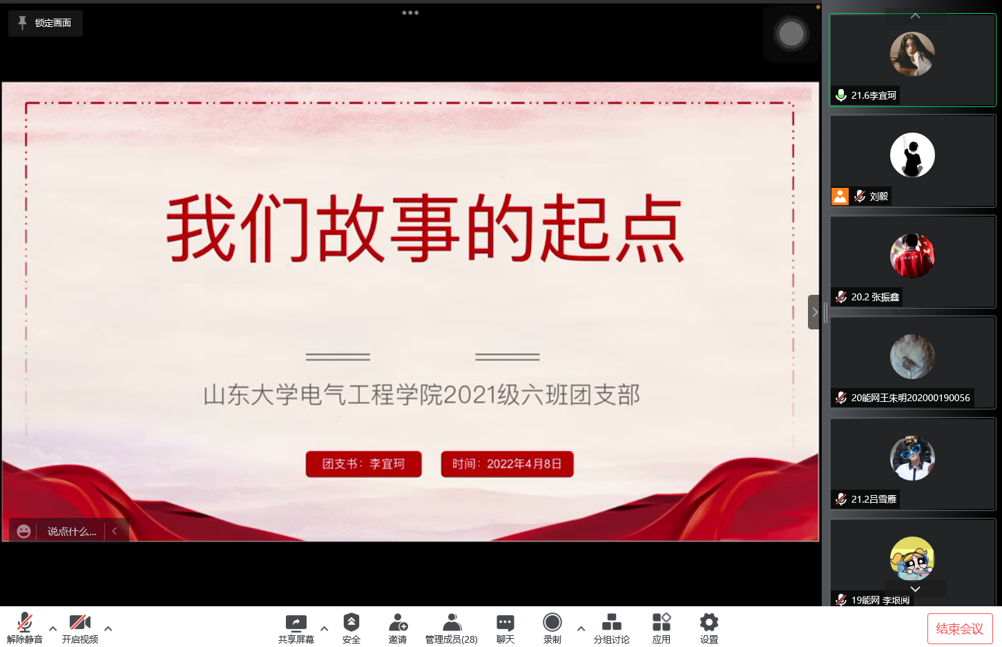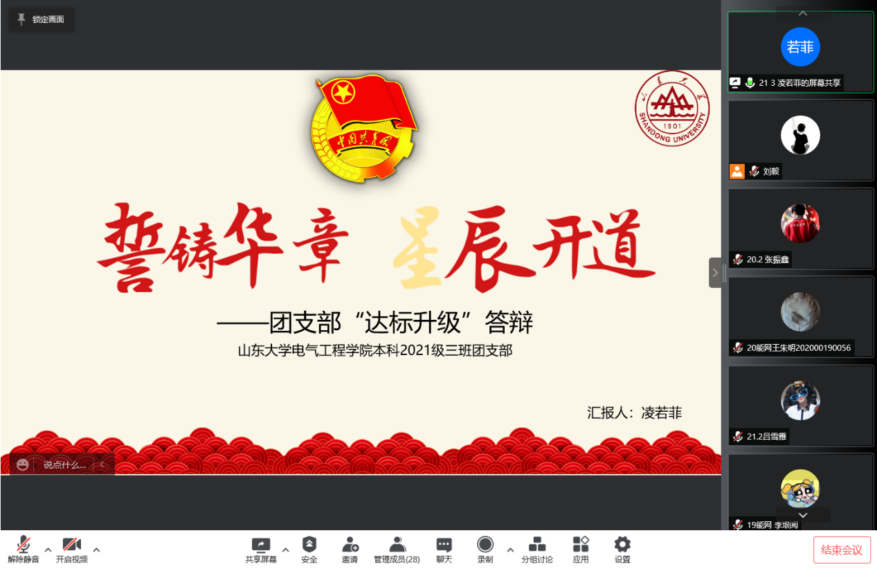 4月8日晚,我院举行年度团支部升级达标答辩活动。根据防疫要求,此次答辩通过线上形式开展。学院19级辅导员刘欣,20级辅导员陈建磊,21级辅导员徐方舟,19级、20级、21级全体团支书参会。