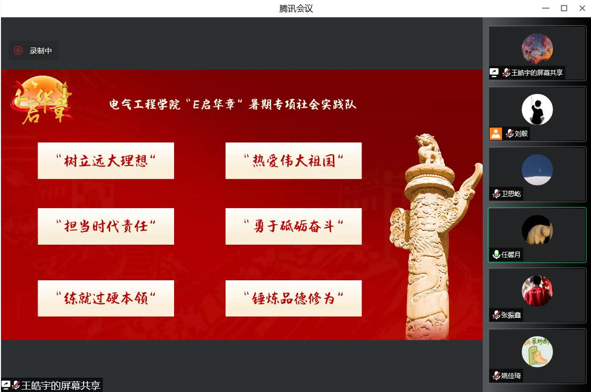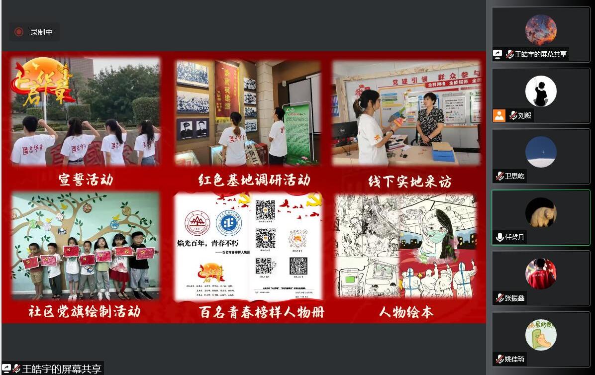 预备党员任馨月、王皓宇对所带喜迎党的二十大青春宣讲团暨“牢记青春寄语”主题宣讲暑期社会实践专项队伍活动开展情况进行汇报。“E启华章”社会实践队以迎接学习宣传党的二十大为主线,通过开展红色基地调研、线下采访宣传、社区宣讲、党旗绘制等活动,出色完成宣讲任务;“青鸟计划”社会实践队在实习就业方面为同学们提供切实可行的指导。