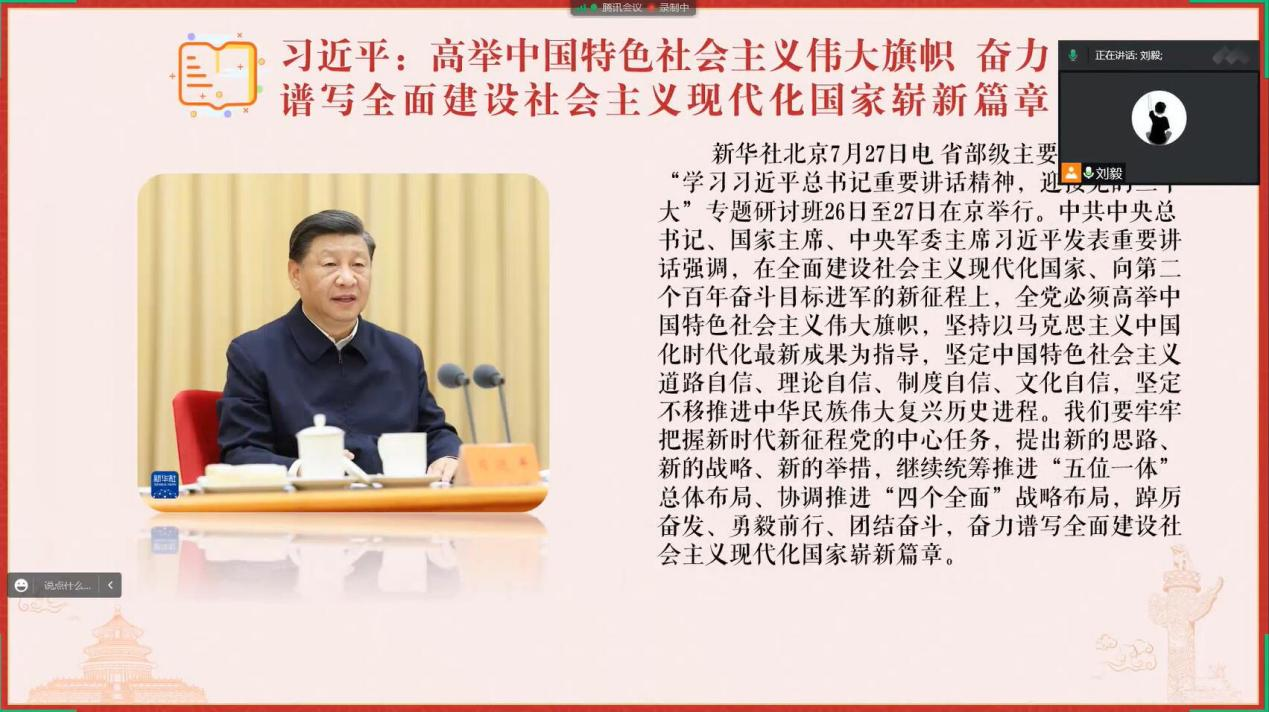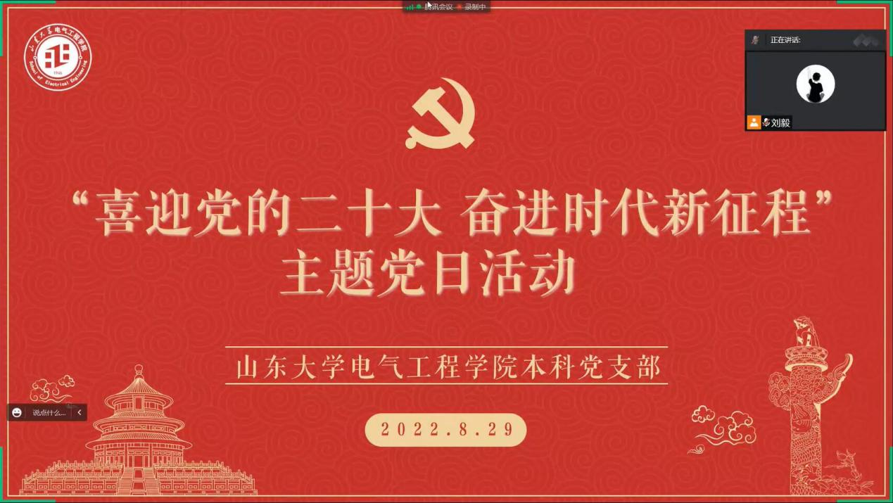 为深入学习《习近平谈治国理政》第四卷,贯彻习近平总书记在省部级主要领导干部专题研讨班上的重要讲话精神和在中央统战工作会议上的重要讲话精神,加强新学期本科生党支部建设和党员培养教育,8月29日晚,yl23411永利集团官网登录本科生党支部举行“喜迎党的二十大,奋进时代新征程”线上主题党日活动。活动由本科第一党支部党员刘毅主持,本科第三党支部书记刘欣主讲党课,全体本科生党员参会。