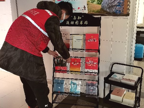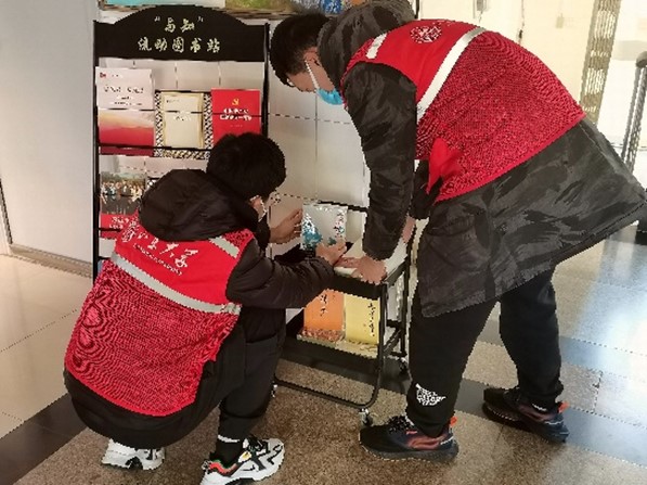 流程有序,赋能志愿服务。流动图书站已成为学院志愿服务基地,成立了一支专门的图书管理员志愿服务队。定期招募志愿者,将书架与挑选的优质书籍运往流动地点,建立共享借阅文档,定期检查图书借阅情况、检查书籍是否有破损、脏污以及核实共享文档中的信息与书架上的书目情况是否相符。