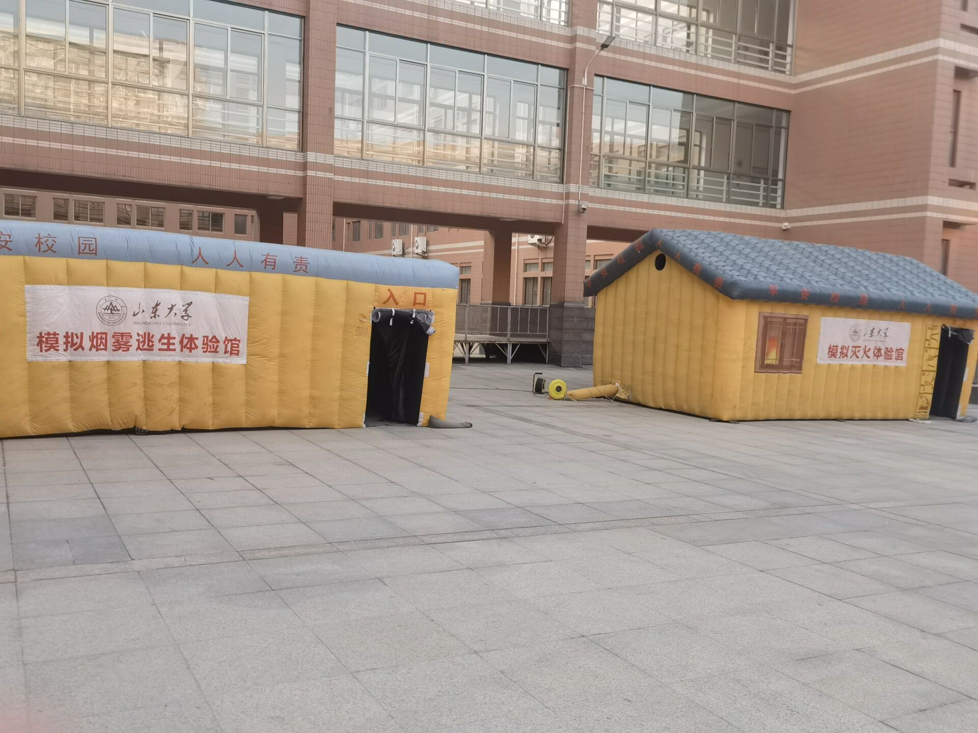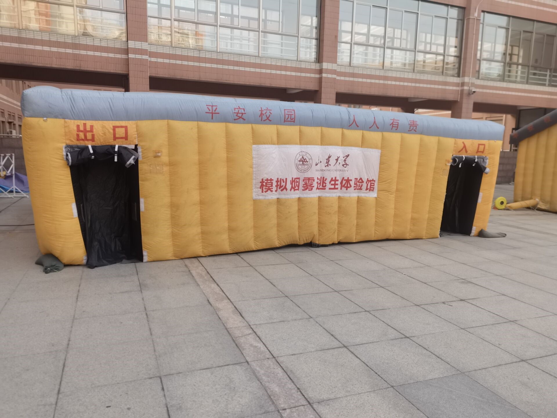 现场还利用模拟逃生仓组织大家进行疏散演练,全体同学按照指导老师讲解的逃生要求,低头弯腰,有序通过模拟逃生仓。同学们在模拟逃生舱内体验到了较为真实的火灾现场,学到了正确的火灾逃生方法。在老师的指导下,活动开展地有条不紊,同学们也真切体会到了在火场中有序疏散的重要性。