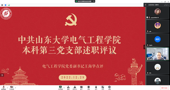 对于本科第三党支部的述职内容,王海华表示本科第三党支部在三全育人、五育并举方面工作颇有亮点,这一年来,该支部积极落实落细疫情防控要求、促进学生德智体美劳全面发展、关注心理健康建设,以党建带团建方面成绩突出,充分关注了不同学生群体需求;但该支部也存在着理论学习方面自觉性、系统性不强,理论联系实际能力培养较弱的问题,同时在支部活动开展上也存在着形式多样性不足的问题,可以在接下来的工作中积极探索。