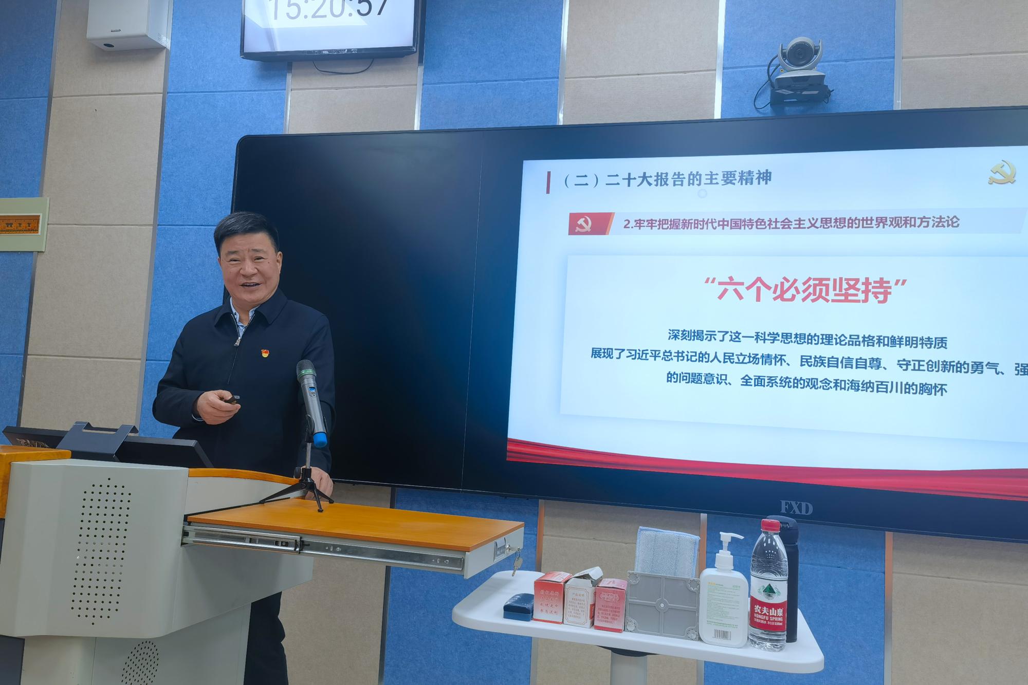 朱德建阐述了党的二十大召开的重大意义和党的二十大报告的主要精神,提出青年学子要不断提高政治站位,紧紧围绕“五个牢牢把握”,深刻认识、深入领会党的二十大的精神要义。他表示,要聚焦高质量发展,准确把握中国能源发展现状及发展趋势,紧跟党中央提出的新时代“两步走”战略安排,锚定2030年前实现碳达峰、2060年前实现碳中和的战略目标,助力国家新型能源体系建设。要紧跟国家战略,心怀“国之大者”,练就过硬本领,矢志追求更有高度、更有境界、更有品味的人生,在科技自立自强中贡献青春力量、展现青年担当。
