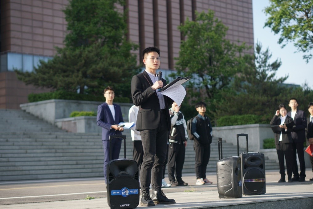 我院2022级本科生辅导员刘德硕寄语同学们铭记祖国历史、传承伟大精神,释放青春能量,点燃青春梦想。他表示,面对时代之发展变化,山大学生使命在肩,要坚定不移听党话、跟党走,怀抱梦想又脚踏实地,敢想敢为又善作善成;面对学习生活的困难和挑战,山大学子要学会勇敢面对、坚定前行,在不断挑战自己、克服自己的过程中,发现自身的潜力和价值。最后,刘德硕希望电气学子坚守理想信念,牢记初心使命;弘扬奉献精神,汇聚强大动力;涵养家国情怀,强化时代担当。