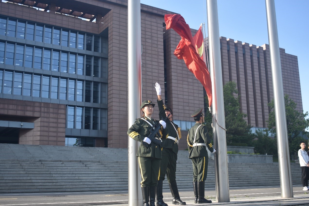 早7时,升旗仪式正式开始。国旗护卫队昂首挺胸、步伐铿锵、眼神坚毅,高举国旗走向升旗台。伴随着振奋人心的《义勇军进行曲》,国旗冉冉升起,全体人员行注目礼,嘹亮的国歌在广场回响,爱国荣校之情在心中激荡。
