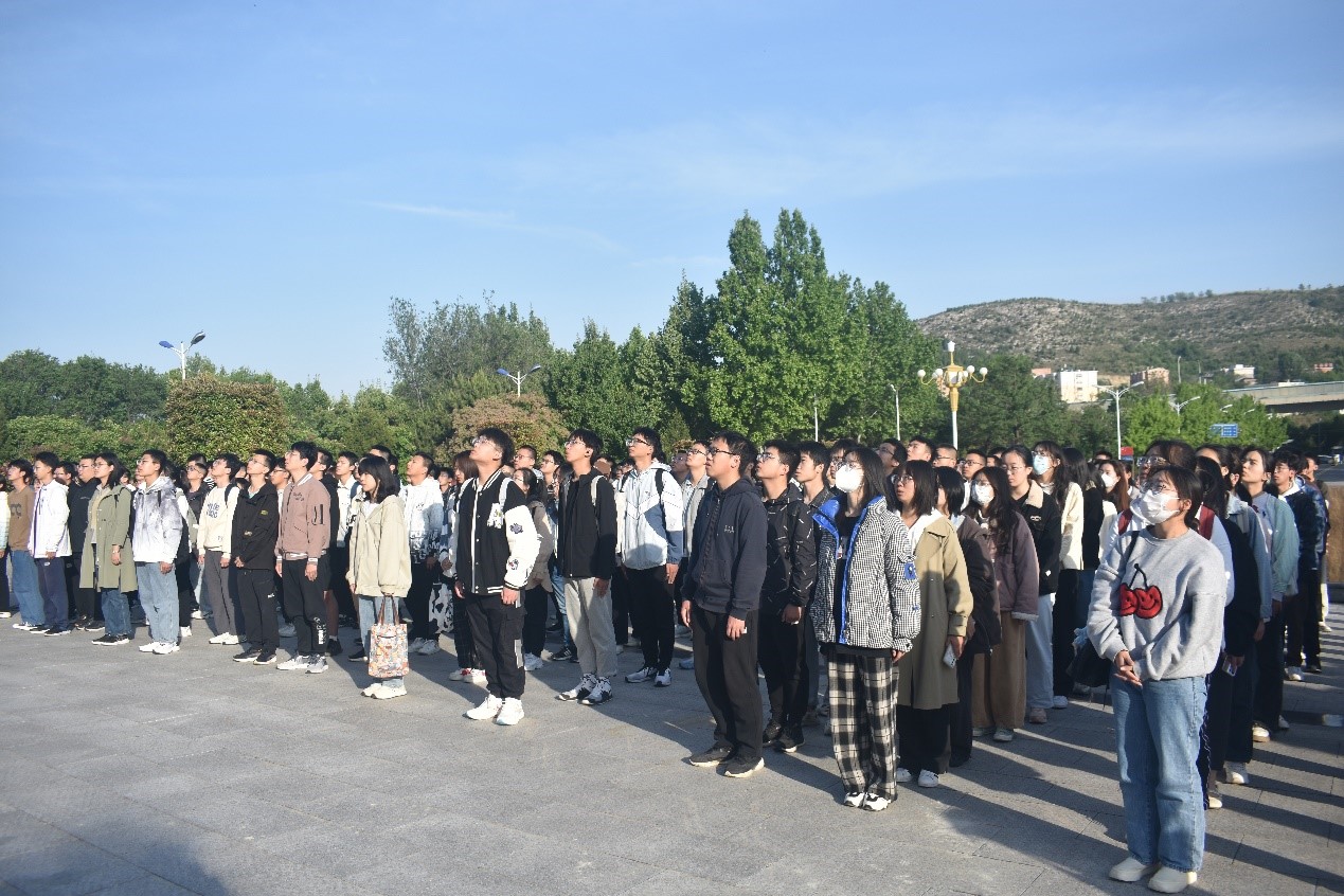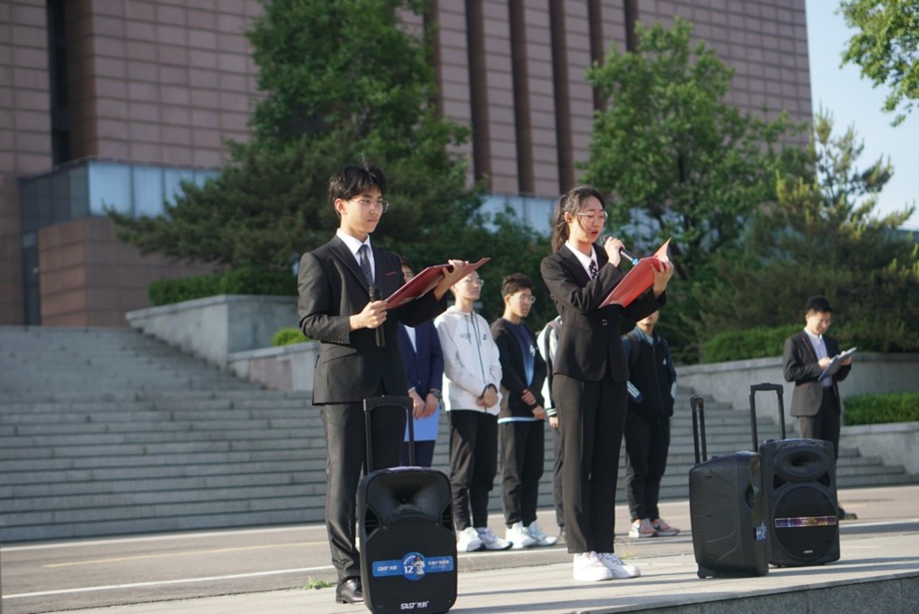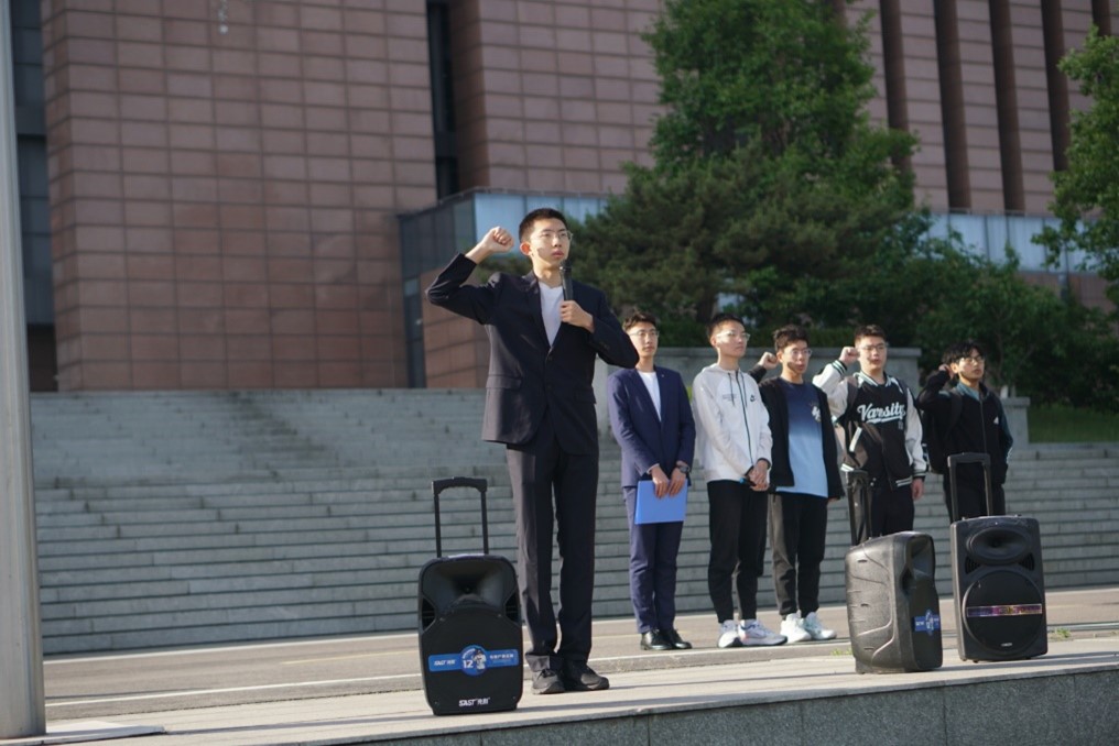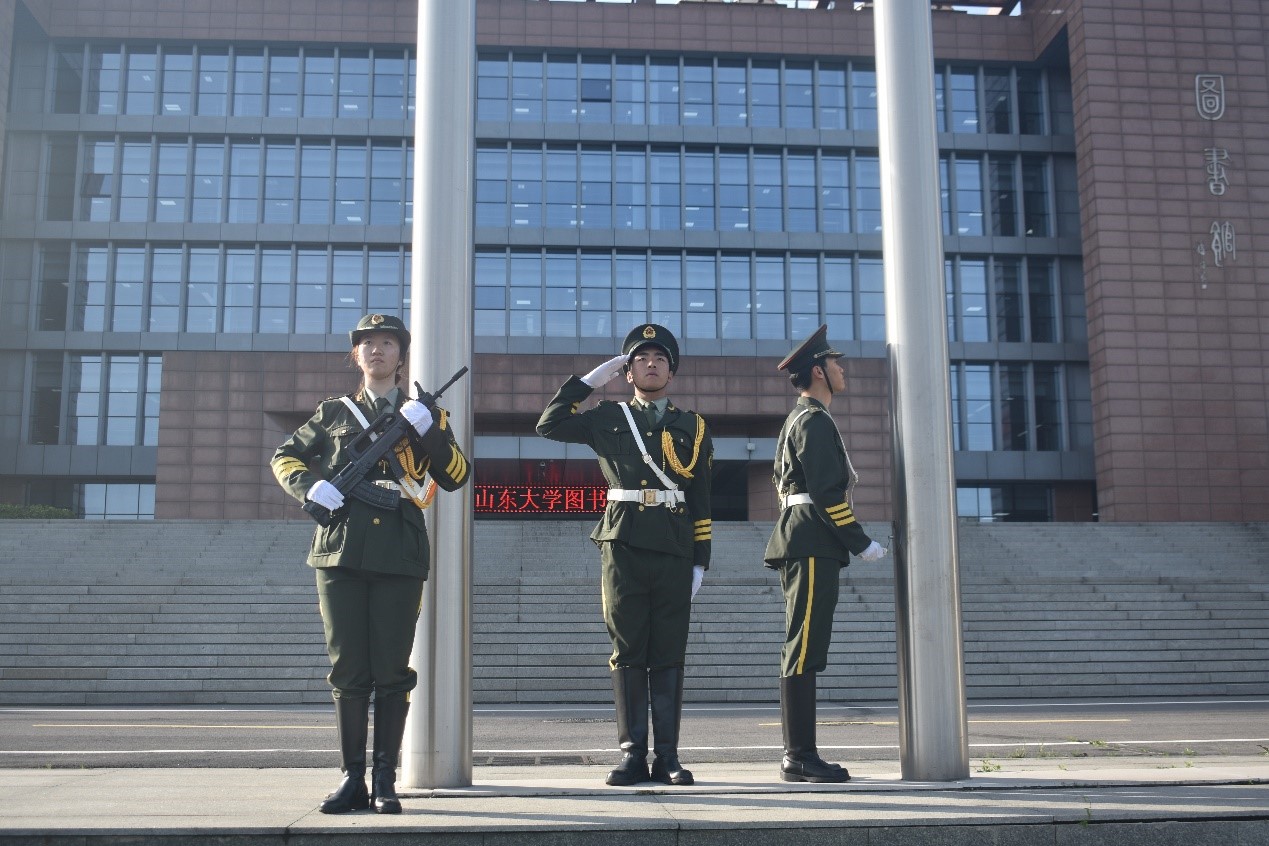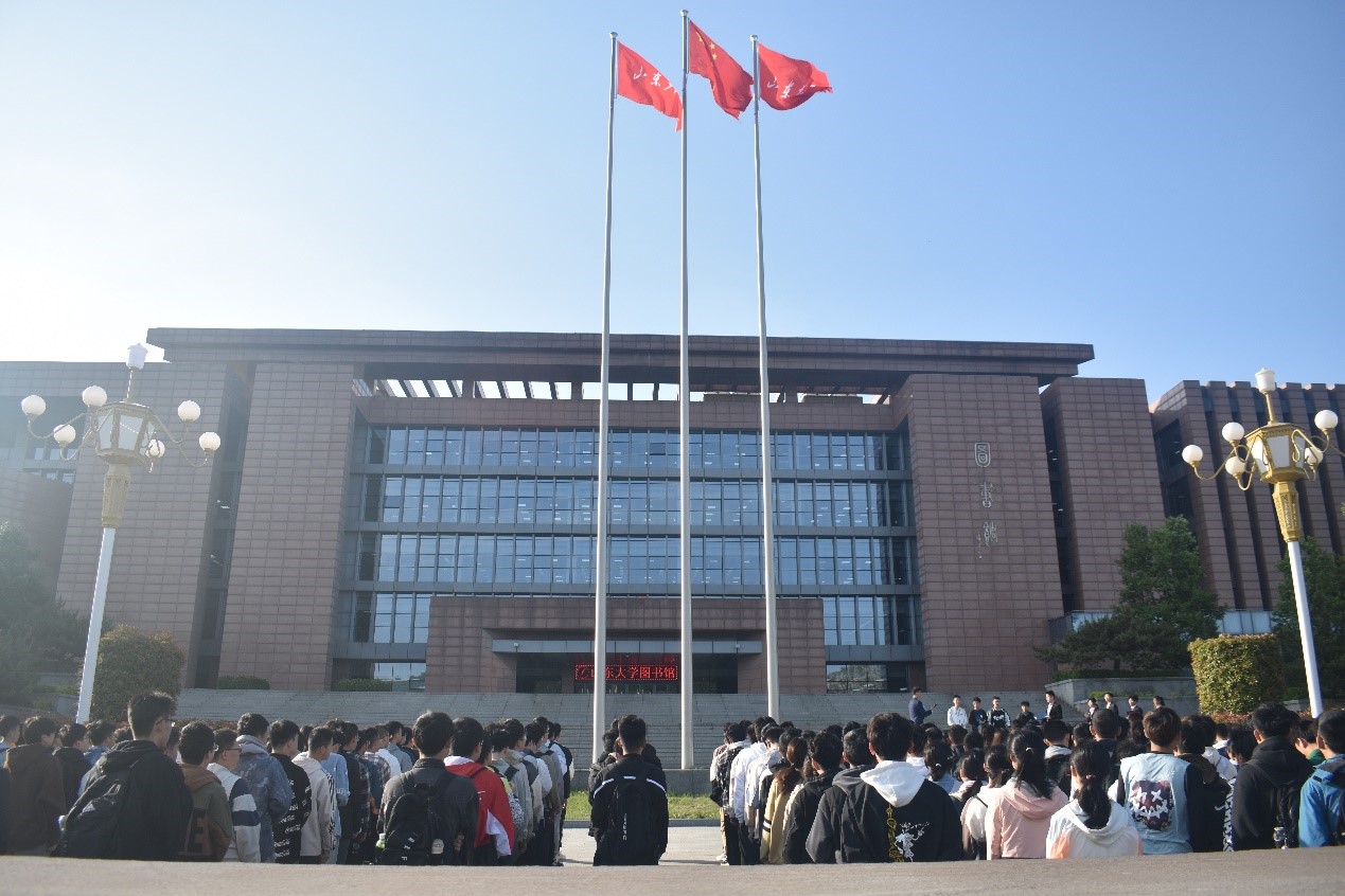 仪式最后,全体同学齐唱《山东大学校歌》。悠扬的旋律在广场上空久久回响,振奋的词句在图书馆前不断回荡。洪亮的歌声满载着山大电气人的昂扬志气,飘向远方。