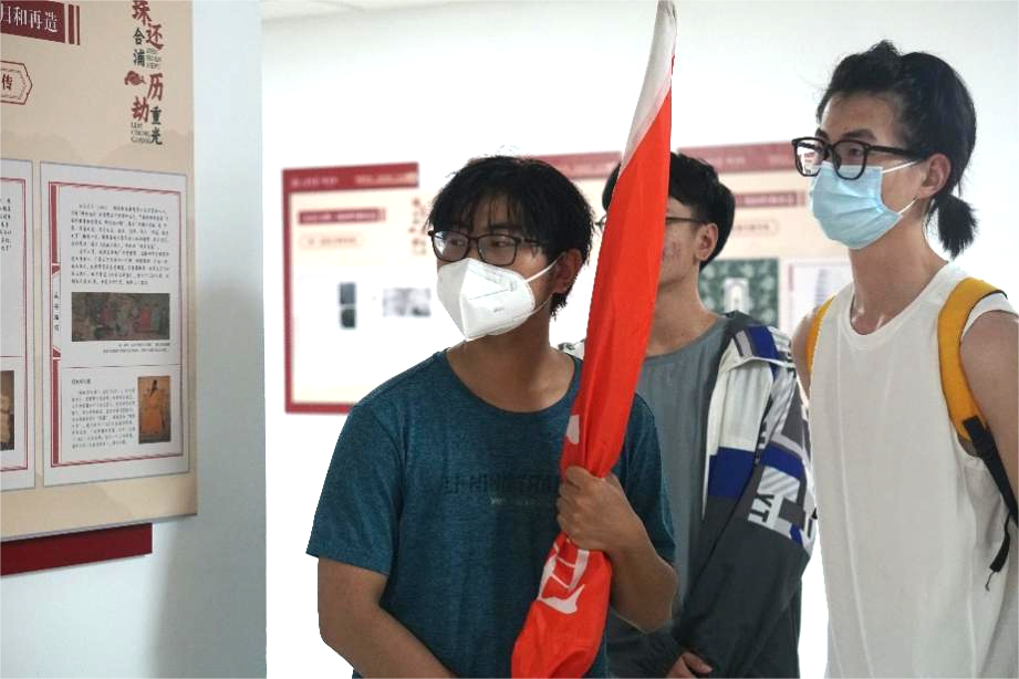 同学们沿着馆内走廊逐步行进,学习墙上资料板中关于《永乐大典》的介绍。老师向同学们介绍,内容分为“大典尤看永乐传”“合古今而集大成”“久阅沧桑惜弗全”“遂使已湮得再显”“珠还影归惠学林”五个部分,翔实地记载了大典的诞生、散佚与复原历程。这部万册巨帙展现了中华优秀传统文化所蕴含的独特魅力与巨大价值,其近代屡遭劫难的经历令人惋惜不已。在了解到习近平总书记对大典的关切与国家实施的重点保护工程后,同学们纷纷表示要争做传统文化的保护者、传承者与发扬者,为重拾消逝的古籍尽己之力。