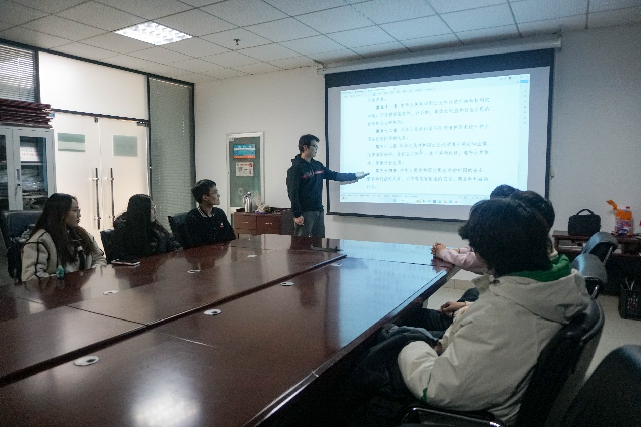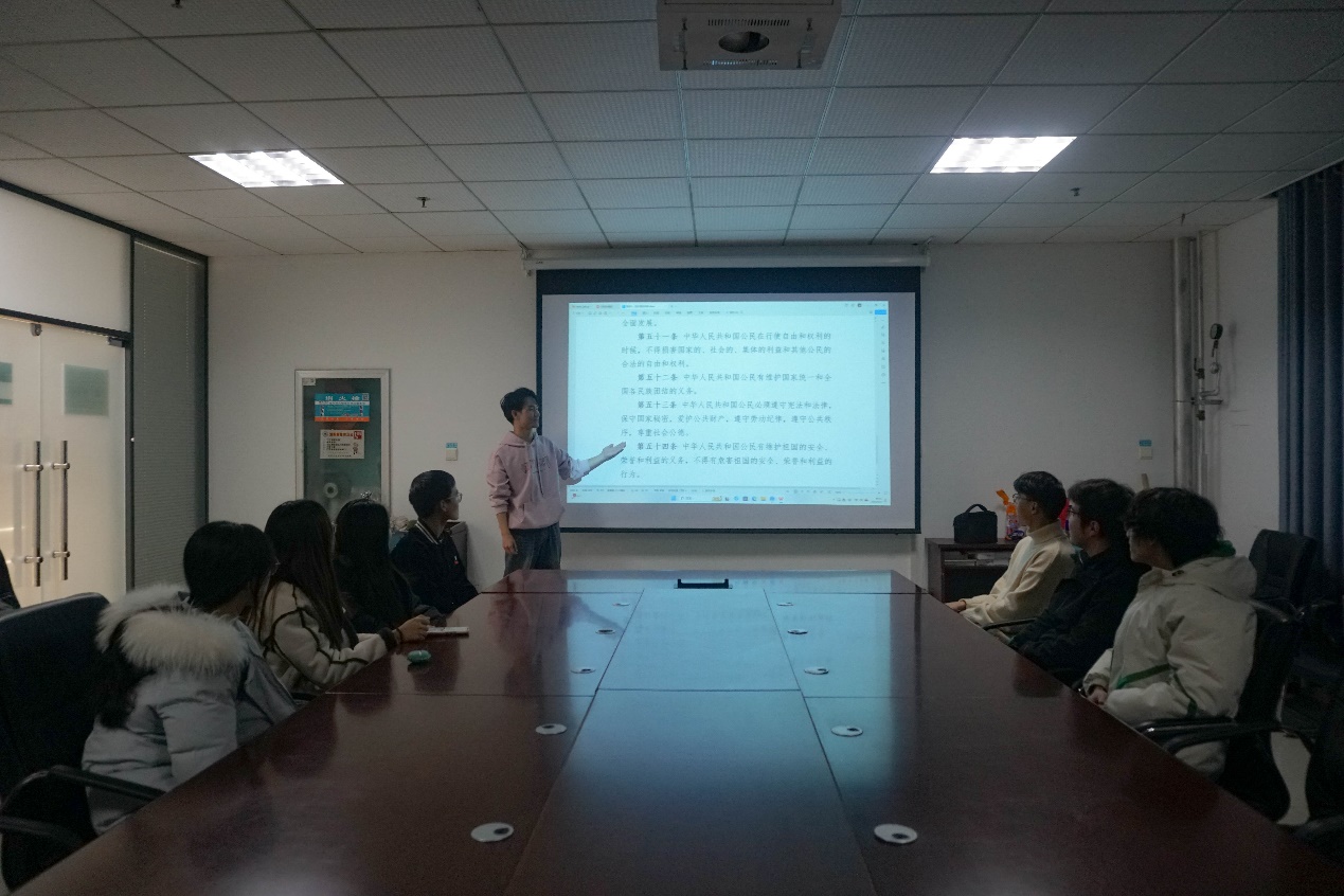 学院高度重视宪法的宣传教育工作,坚持统筹协调,合理规划时间安排。学院结合国家宪法日暨宪法学习周活动,组织学生在主题团日进行宪法条款宣读。为进一步深化宣读学习成果,学院一并开展了宪法宣读展演系列活动,同时组织学生组织功能性团支部开展宪法交流和学习活动,进行宪法知识讨论,培养了同学们学习宪法、遵守宪法的行动自觉。