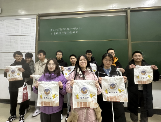 在打卡活动结束后,2班班委对打卡的同学进行了统计、核查,所有同学都圆满完成了任务。其中,有11名同学表现优异,被称为口语模范标兵。为了表彰参与者的努力和成绩,精心特意设计的班级文创帆布袋作为奖品颁发给每位完成打卡任务的同学。本次活动不但提升了同学们的英语口语水平,更帮助同学们养成了系统规律的学习习惯,激发了今后的学习动力。