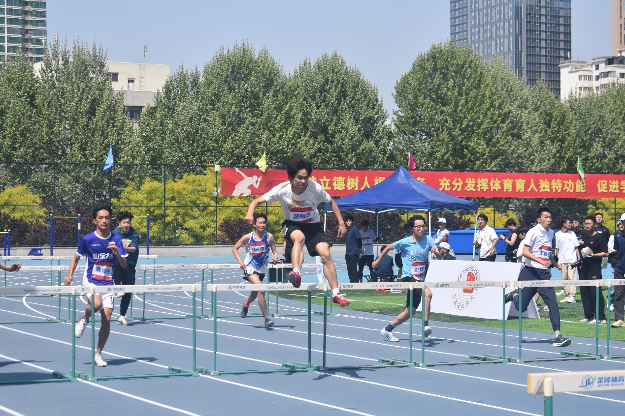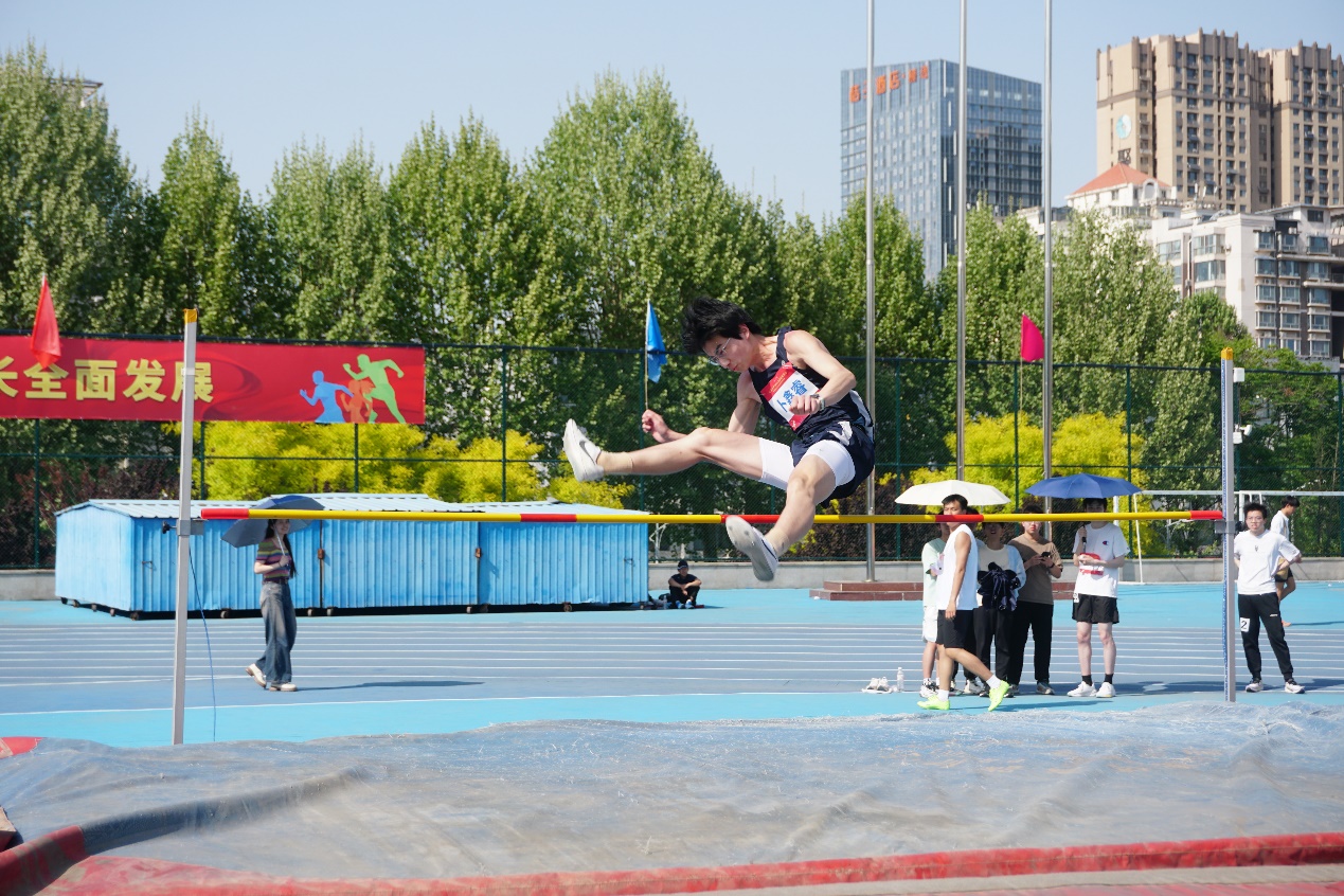春光不待人,运动正当时。110米栏赛场上,李宗润以21.21的成绩斩获男子组第6。卜鑫睿身轻如燕,纵身一跃,在男子跳高比赛中取得亚军;男子三级跳比赛中,他又以10.90米的傲人成绩荣获第7名。