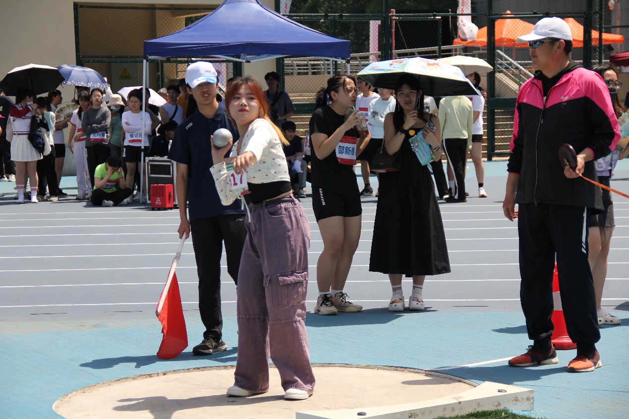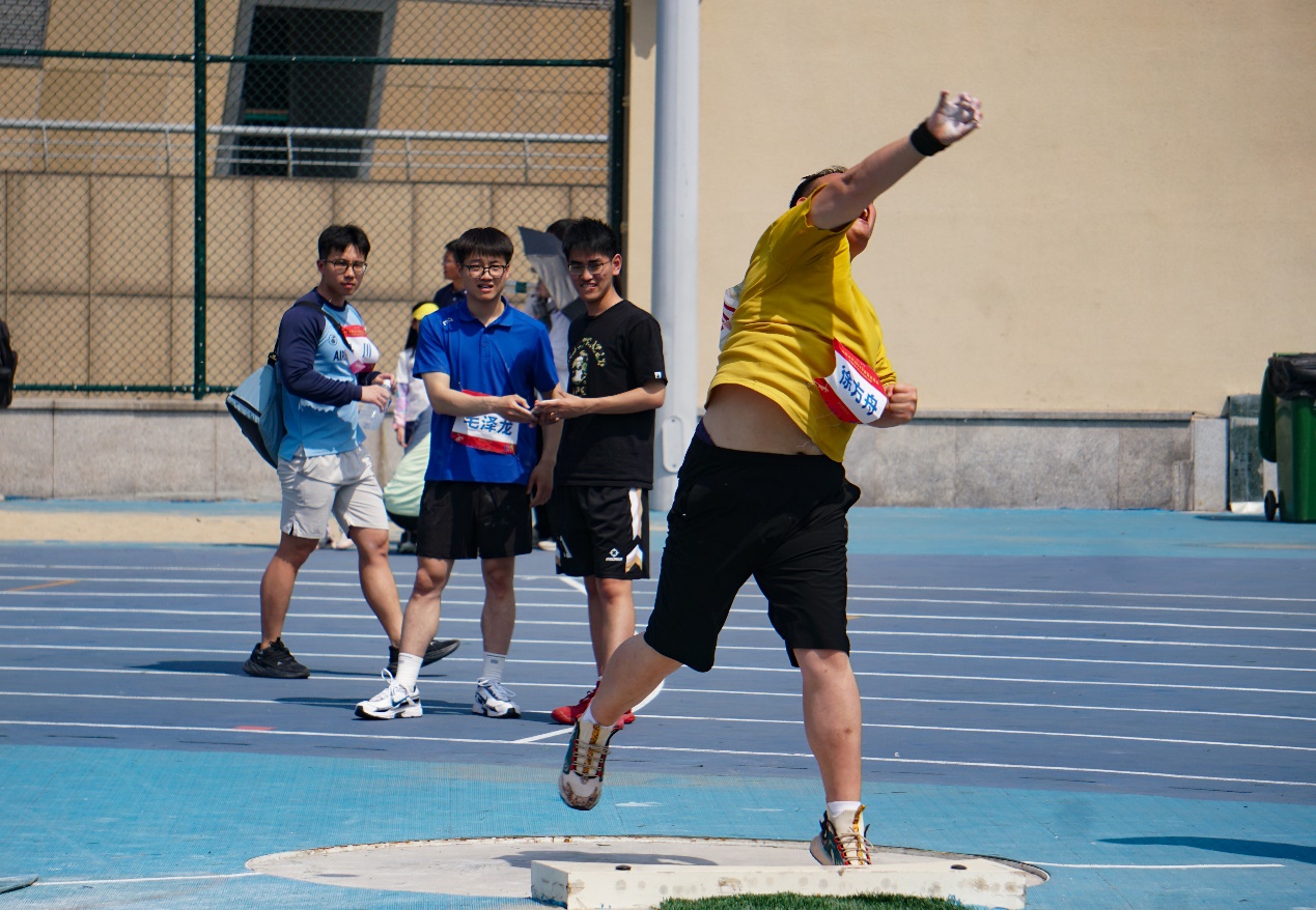 昔日三尺讲台之上,老师们务实严谨,兢兢业业,亦师亦友;今朝绿茵赛场相见,老师们风采卓然,英姿飒爽,斗志昂扬。1500米比赛中,张荣势如破竹,于欢呼呐喊中获得了职工男丙组1500米决赛的冠军;在铅球赛场上,力与美的交响曲奏响,选手们挥洒汗水,铅球划破长空。最终,徐方舟以11.75米的优异成绩夺得职工男甲组铅球冠军,贠志皓以9.68米夺得职工男丙组亚军。柴亚南奋力一搏,在职工女乙组铅球比赛中掷出了第6名的好成绩。