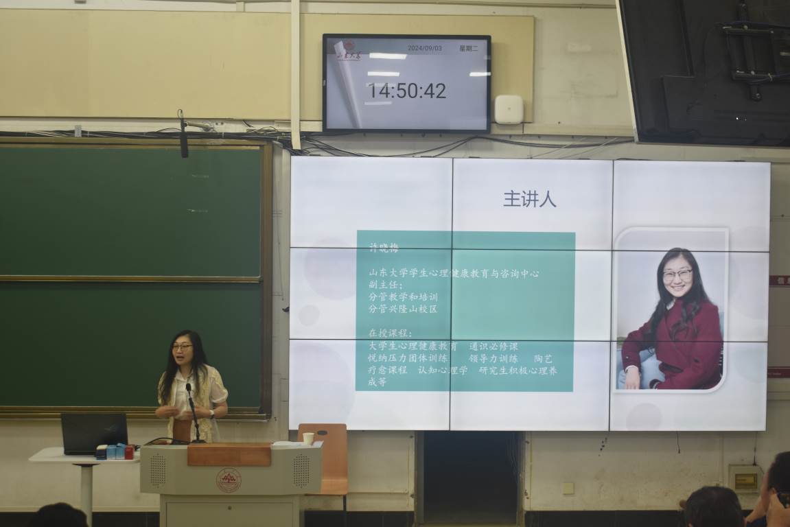 许晓梅进行了题为“家校合作,同心同行”的新生心理健康专题宣讲会,通过展示调研数据列举新生可能面临的常见适应问题以及其中较为严重的情况,强调家长正确认识并重视孩子的心理状态。她引导家长们学会调整心态,理解孩子,通过良好的沟通促进亲子关系的和谐发展,在尊重并培养独立性的同时正确引导孩子的想法与行动,积极配合学校工作,与学校共同撑起孩子健康成长的天地。