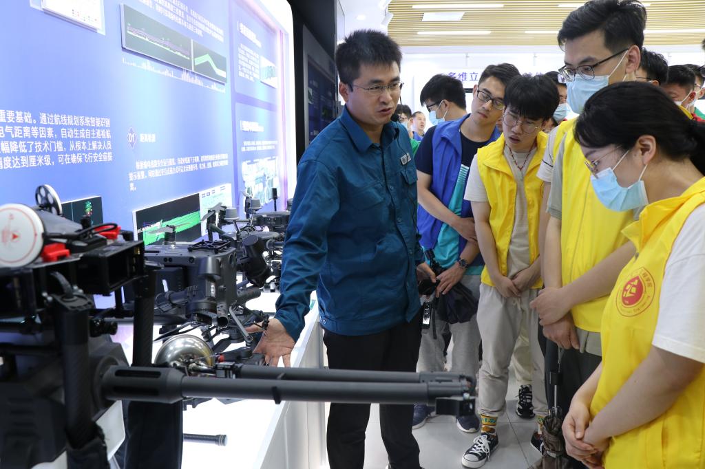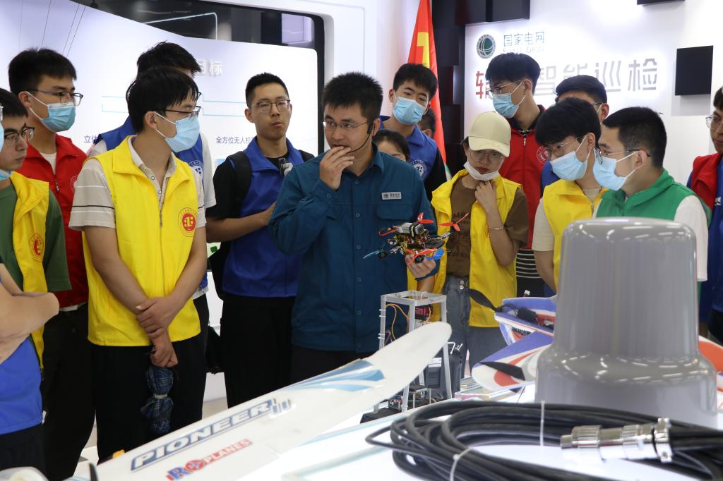 在产业园区,实践团分别参观了姚海滨创新工作室、成果展示室以及输电运检中心党支部。姚海滨创新工作室定位于解决生产一线工作中的技术难题,打造“学习型、知识型、技能型、创新型、专家型”职工队伍的创新性工作室。实训过程中,姚海滨老师通过各项研究成果,讲解了以坚强输电网为基础,充分应用可视化、无人机、智能输电平台、智能传感器等现代技术装备搭建的前端多维立体信息采集体系。琳琅满目的发明创造拓宽了实践团同学们的眼界,激励着同学们的科研创新精神,同时提升了对国家电网技术发展的认知。