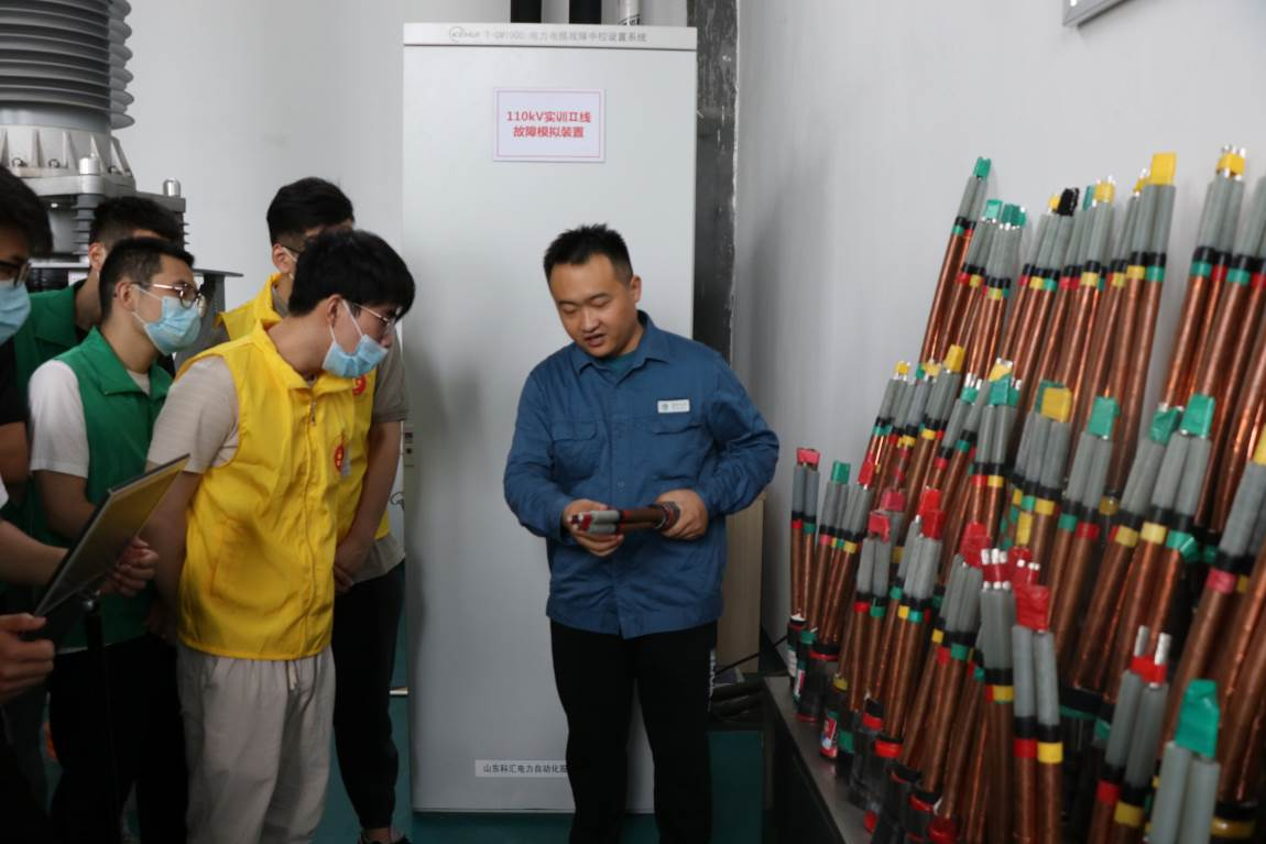 次日,由企业助教老师带队,实践团来到了电缆实训基地,电缆运检班付班长向实训团认真细致地讲解了电缆附件的制作、电缆预处理、红外测温模拟电缆终端以及电缆故障检测的常用方法。同学们接触到了不同现场环境下所采用的各式各样的电缆设备,丰富了自己的实践知识。