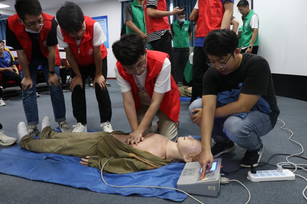 实践第三天,实践团在工具实训室参观了一系列常用金具、绝缘子、导线、输电线路杆塔,顺着参观通道,书本中的电力器具一个个展现在眼前,同学们感受到了书本讲解和现场实物的认知差距,深刻体会到“纸上得来终觉浅,绝知此事要躬行”实践参观的必要性。VR实训室内,在指导老师的帮助下,同学们先后体验了VR无人机飞行、VR带电作业、VR现场施工。随后同学们在电力安全体感实训室内切身感受触电、重物撞击等电力安全模拟体验,并进行了心肺复苏的实操练习,深刻感受安全才是一切工作的基石,而人身安全更是安全工作的重中之重。