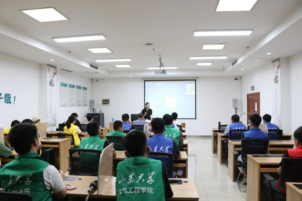 到达培训基地,实践团同学们通过班会破冰活动拉进了彼此之间的距离,同时学习了解了济宁文化、济宁公司及技能实训站相关情况。