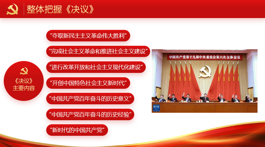 会议第二项,陆双庆领学了《决议》的主要内容。集体学习主要分为三部分开展:梳理《决议》的整体方向、介绍了《决议》的主要学习内容和支部党员集中进行学习讨论。陆双庆强调,要整体把握《决议》,就要了解两大主要特点:(1)总结党的百年奋斗重大成就和历史经验;(2)突出中国特色社会主义新时代这个重点。在介绍《决议》的主要内容部分, 他讲到,《决议》的前四部分,将大党百年历史划分为四个历史时期,深刻阐明每个历史时期党的任务、取得的重大成就及其历史意义,这几部分结合党史进一步学习。在《决议》第四部分,在党的十九大报告“八个明确”的基础上,用“十个明确”对习近平新时代中国特色社会主义思想的核心内容作了进一步概括。在此基础上,他对补充部分的“四个意识”、“四个自信”、“两个维护”和新增的两个“明确”等内容进行了进一步说明。最后,支部成员共同学习了《决议》中的五大历史意义、十条历史经验和一个伟大号召。在集中学习讨论阶段,支部党员同志在集体学习后,围绕党的十九届六中全会精神,结合当下青年党员的身份,进行交流研讨。副党支书姜心怡表示,《决议》是一份以史为鉴、开创未来的纲领性文件,在建党百年的重要历史时刻,决议全面总结了党的百年奋斗重大成就和历史经验,具有重大现实意义和深远历史意义,作为青年党员,我们要认真学习好这份《决议》,将《决议》精神贯彻到自己的生活和学习中去,争做优秀党员。