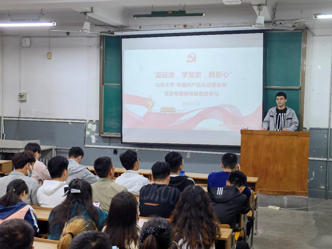 2021年5月11日晚,“温征途、学党史、践初心”红色研学实践队伍观看了上海交通大学刘统教授为山东大学作的题为《中国共产党从这里走来》的党史专题辅导报告会记录视频。