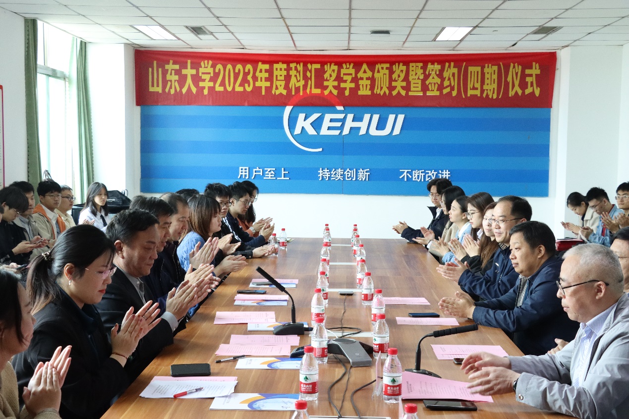 4月10日,山东大学科汇奖学金颁奖典礼暨第四期签约仪式、yl23411永利集团官网登录研究生科技实践活动在山东科汇电力自动化股份有限公司举办。 山东科汇投资股份有限公司总经理王相安,山东大学研究生院、党委研究生工作部培养办公室主任许峰,yl23411永利集团官网登录党委副书记宋思利 等领导出席活动,山东科汇电力自动化股份有限公司部分领导、学院部分教师代表、全体获奖学生及研究生实践团成员参加活动。典礼由科汇电力自动化股份有限公司总工程师王敬华主持。