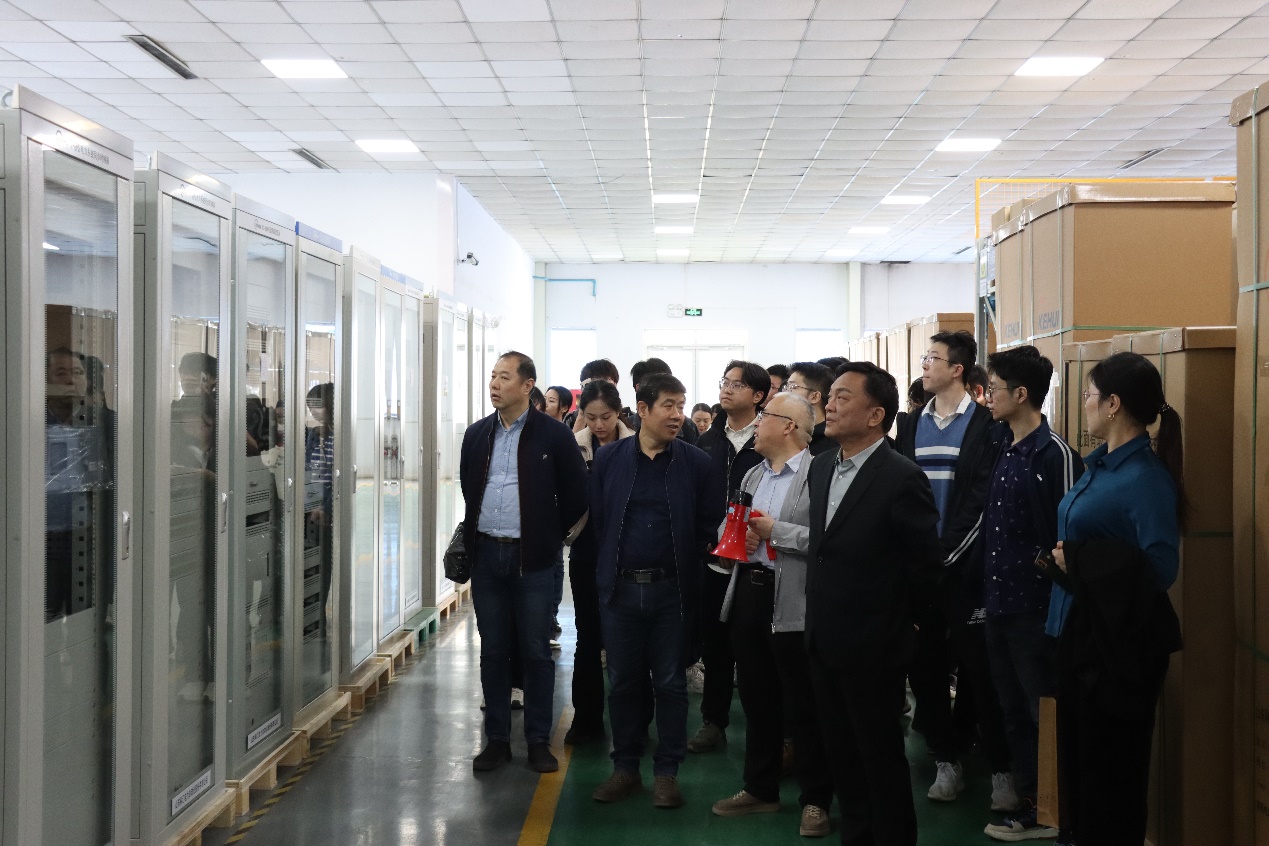 典礼在热烈的掌声中落下帷幕。在科汇公司相关人员的带领下,yl23411永利集团官网登录研究生实践团队前往企业生产车间,深入一线观摩学习,参观了电路板生产线、电力系统实验室、电磁兼容实验室等场所,了解企业研发、生产与销售等流程。在配电网模拟实验室中,工作人员对电气试验作了详细讲解,同学们进一步将理论与实践相结合,亲身体验到了智能工业发展的魅力。