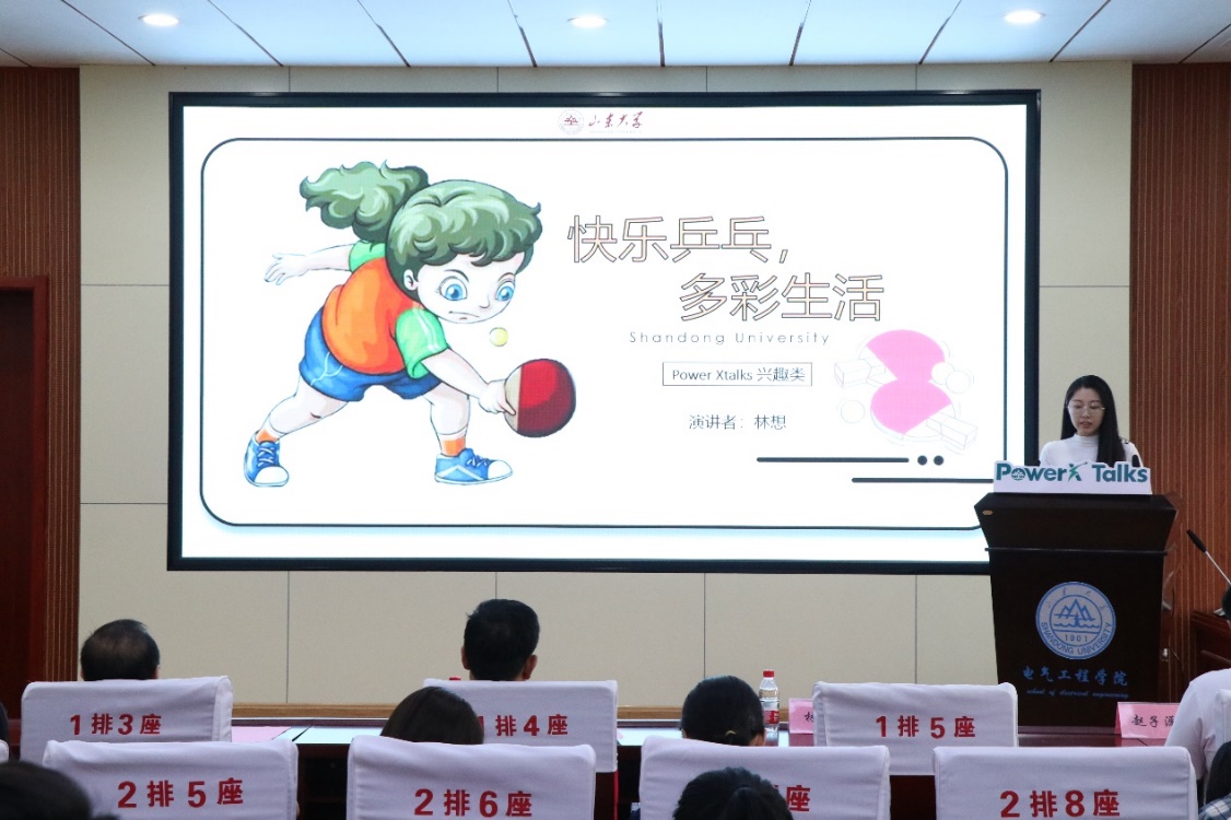 林想同学以“快乐乒乓,多彩生活”为主题,分享了乒乓球的起源与发展、比赛赛制、器材介绍与基本动作,以自己的亲身经历向观众展示了乒乓球所蕴含的丰富内涵和价值意义。相信通过这次分享,会有更多的人能够体验到“快乐乒乓”所带来的无穷魅力。