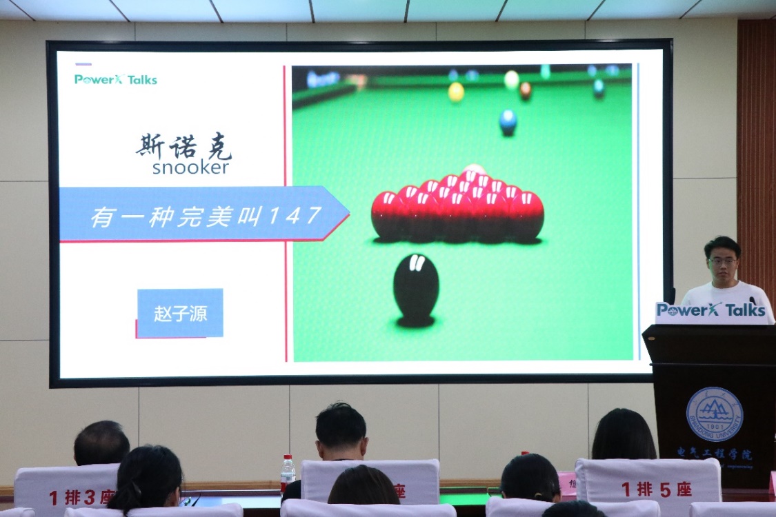 赵子源以“斯诺克——有一种完美叫147”为主题,深入浅出地为大家介绍了斯诺克的历史与起源、规则与技巧,以及斯诺克界的璀璨群星,最后还向大家介绍了斯诺克在中国的发展现状。相信通过赵子源的分享,大家对斯诺克会有更加全面的了解,同样也会愿意去尝试这项“绅士的运动”。
