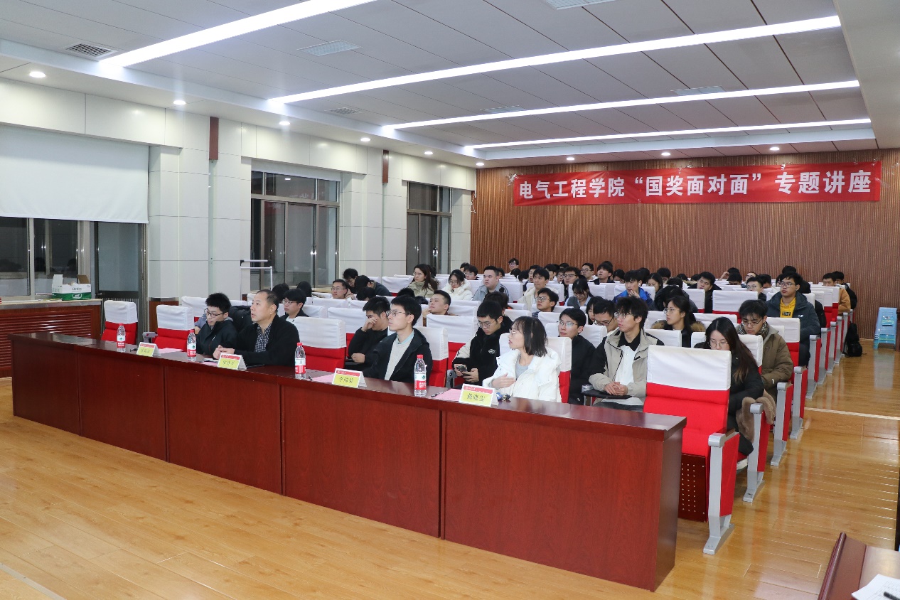 2024年12月18日,“国奖面对面”线下交流活动在电力楼四楼报告厅圆满举行。本次活动邀请了三位荣获国家奖学金的优秀研究生代表——宋苑宗、戴晓雯、李国荣,他们围绕国奖获奖历程、论文撰写技巧以及研究生生活发展规划与大家展开交流,讲座由电气研究生会学术科创中心吴志凯主持,研究生思政办公室主任宋济平出席本次讲座。